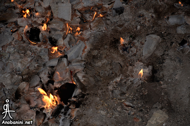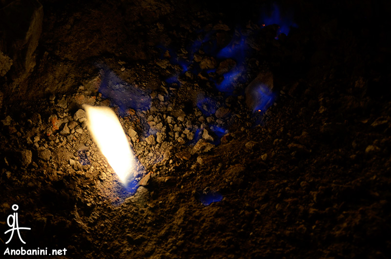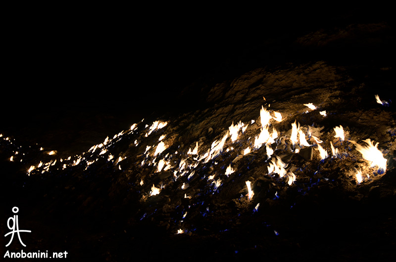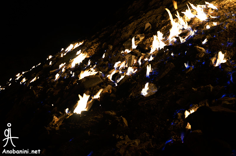 شعله های این کوه حاصل خروج گاز طبیعی از زمین است که طبق گفته اهالی از زمان های بسیار دور می سوخته است. گاز خروجی حاوی ترکیبات بدبو و احتمالا سمی است و به همین دلیل پیشنهاد شده که زمان زیادی در نزدیکی آتش توقف نکنید.