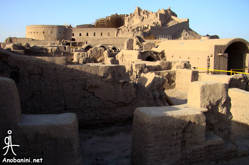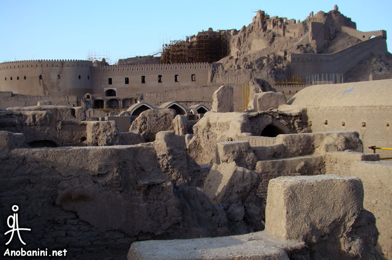 پيرامون ارگ بم، حکايت هاي تاريخي که گاه به افسانه مي ماند، فراوان است. ولي سعي بر اين است که مستندترين موضوعات باستان شناسي با مدد از تاريخ و معماري در معرفي هرچه بهتر اين بناي بزرگ دخالت داشته باشد. بنا به تحقیقات آنوبانینی سابقه تاريخي ارگ بم به موجب نوشته هاي تاريخي، از جمله حدودالعالم و تاريخ وزيري به دو هزار سال پيش مي رسد. شواهد زيادي از جمله وضعيت پلان مرکـــزي و تعدادي خشت موجود در خانه حاکم و خانه رئيــس سربازخانه ادعاي فوق را به اثبات مي رساند. در کل، از مجموع نوشته هاي دوران اسلامي و بررسي هاي مقدماتي معماري و باستان شناسي مي توان نتيجه گرفت که ارگ قبل از حکومت ساساني و احتمالا در دوره اشکاني ايجاد شده و چند حصار و دروازه، در اطراف آن وجود داشته است.