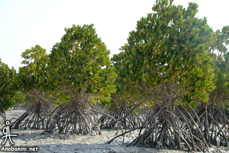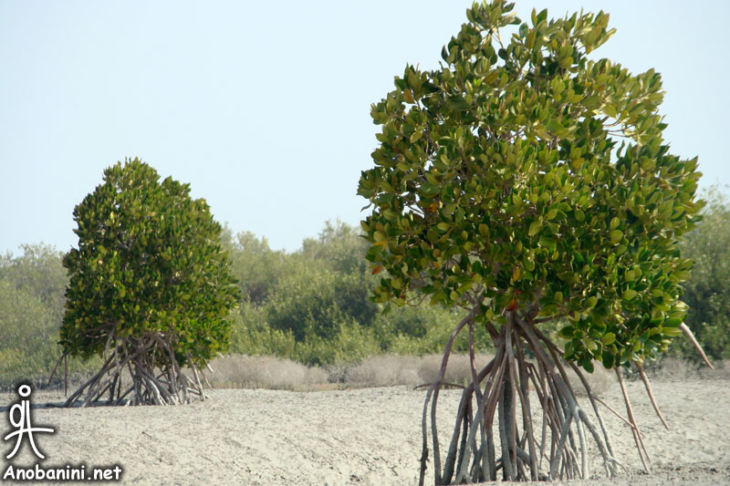 عده ای عقیده دارند این درختان طی سالیان دراز تكامل، از دست آسیب های آدمی، به بستر گلی سواحل و آب شور دریا پناه برده اند. این جنگل ها بیشتر از درختانی تشكیل شده اند كه حرا نام دارند. حرا گونه ای درخت مانگرو است كه در سواحل شمالی قشم به كثرت و فراوانی دیده می شود. این درخت در زبان لاتین به نام ابوعلی سینا پزشك و فیلسوف شهیر ایرانی نامگذاری شده است.