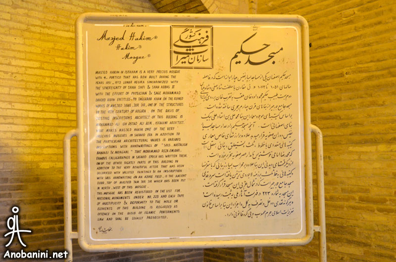مسجد حکیم اصفهان در انتهای بازار رنگرزان واقع شده است و در دورهٔ شاه عباس دوم به دست پزشک او حکیم محمد داوود در محل ویرانههای مسجد جامع دیلمی جورجیر یا مسجد صاحب اسماعیل بن عباد از قرن چهارم هجری بنا شده است.