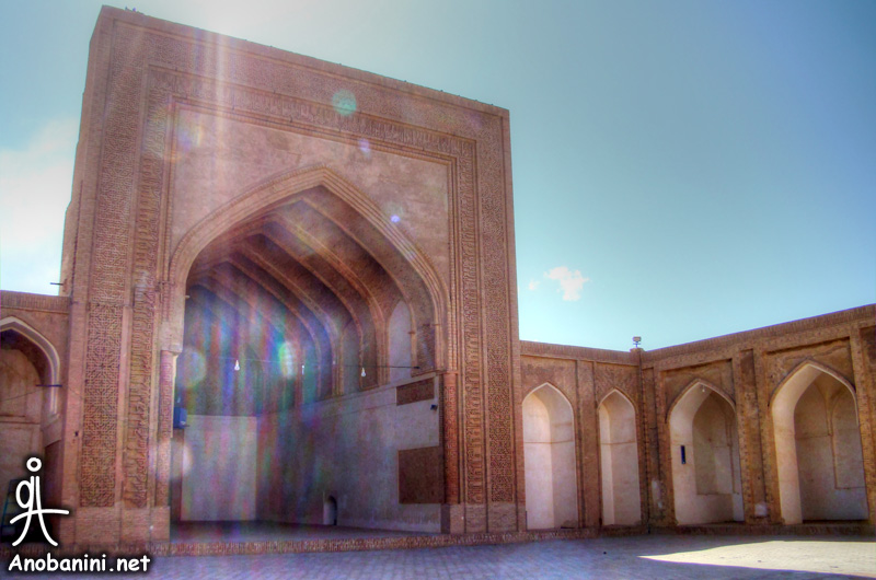 یكی دیگر از شاهكارهای تاریخی استان خراسان مسجد جامع گناباد است. این مسجد جز بناهای دو ایوانی است كه در سال ۶۰۹ هجری قمری ساخته شده و از امتیازات مهم آن وجود كتیبههای كوفی و آجركاریهای زیبا میباشد كه بر اطراف ایوان قبله آن نقش بسته است. بر اساس آثار و شواهد موجود ساختمان كنونی دارای الحاقاتی میباشد كه احتمالا در دوران ایلخانی ایجاد شده است. این مسجد یكی از 3 مسجد ایران است كه به سبك 2 ایوانی در اوایل قرن 7 هجری ساخته شده است. ایوان اصلی آن، ایوان قبله است.