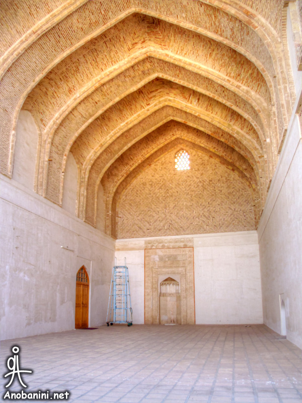 مسجد دارای 3 شبستان در اضلاع شرق، سمت چپ ایوان جنوبی و سمت راست ایوان شمالی است كه از شبستان اخیر اكنون به عنوان مقبره استفاده می گردد. از لحاظ هنر آجرکاری (در ایوان جنوبی) و ساختمان محراب و منظره ی بدیع سقف، دارای اهمیت بسیاری است.