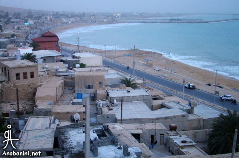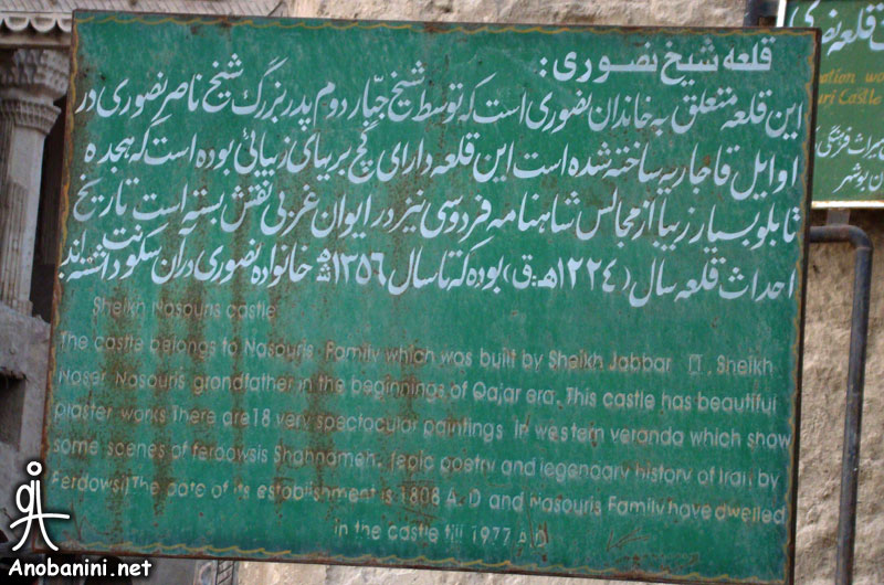 قلعه شیخ ناصر نصوری و نمایی از بندر سیراف