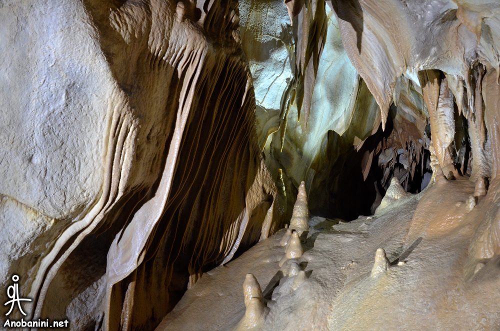 4- کف غار کمی مرطوب و لغزنده است و سقف غار هم لبه های تیز و خطرناکی داره. به همین دلیل داشتن کفش و کلاه مناسب ضروریه.